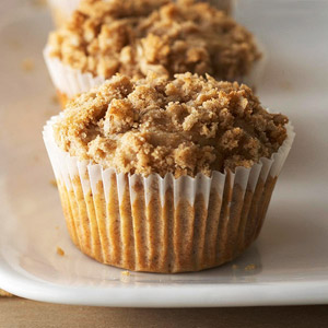 2. Spoon batter into prepared muffin cups, filling each about three-fourths full. Sprinkle Streusel Crunch Topping evenly over batter in muffin cups.