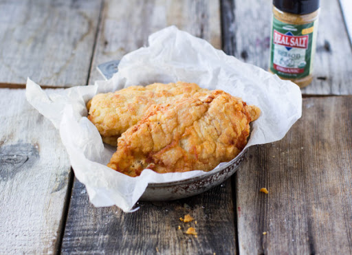 Oh man, I love that we at least did picnics. Yes, they take a little more work and eating on a blanket may not be as convenient as a table, but trust me your kids will love it. It’s an important part about growing up. There’s something wonderful about relaxing in the warm sunshine with delicious food, and this time you don’t have to run to KFC, I’ll give you a fool proof, easy fried chicken recipe that everyone will be begging for more and the seasoning is so delicious you’ll be licking your fingers. All we do is is set the chicken in salt water for thirty minutes to make it more juicy and flavorful (we figured, if it works for Thanksgiving turkey it must work for fried chicken!), then do a double dip in egg and flour (because one time just didn’t make them crunchy enough and everyone needs extra crunchy yumminess) and then fry. Once the breasts are done, remove from the oil and sprinkle with season salt, we use