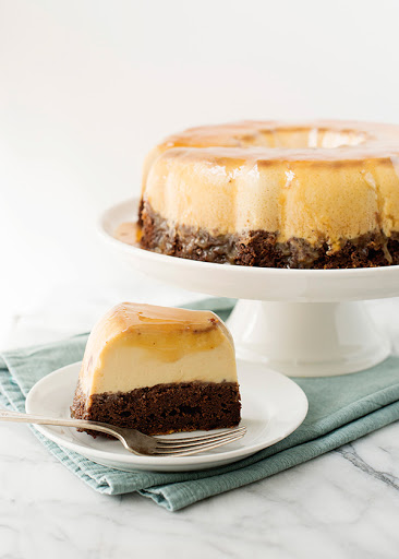 To unmold, place the bottom of the cake pan in hot water for 1 minute. Place a cake plate over the cake pan and flip over. Slowly remove pan and serve.