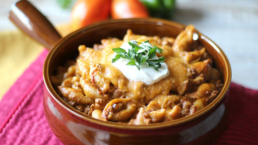 In 5- to 6-quart slow cooker, place cooked beef and remaining Taco Pasta ingredients except pasta shells and Cheddar cheese; stir until well combined.