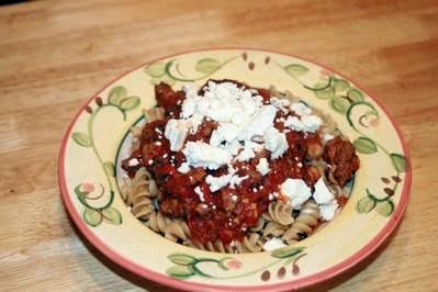 7. Serve over the pasta of your choice and top with sprinkles of Parmesan or goat cheese.
