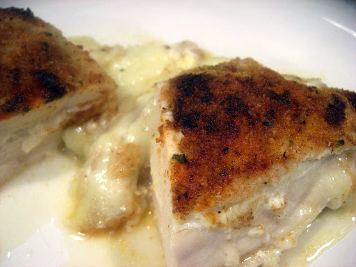 AWESOME, delicious meal created by my sister in law, made even better by my FFH!! Crispy coated oven baked chicken with a cheesy filling.