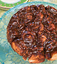 Arrange slices over chocolate sauce in prepared pan. Cover and let rise in a warm place (85 degrees), free from drafts, for 45 minutes, or until doubled in size. Preheat oven to 350 degrees.