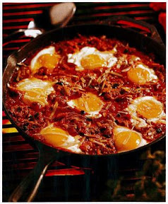 Breakfast, Mario-style. "This is so easy," Batali says with his typical exuberance. "You make a spicy tomato sauce, crack eggs into it, let it all cook for about four minutes, and it's good to go."