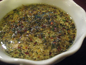 This was a really good oil dip, perfect for an appetizer. This is a tad spicy, so if you don't like the heat, leave off or cut down on the crushed red pepper.