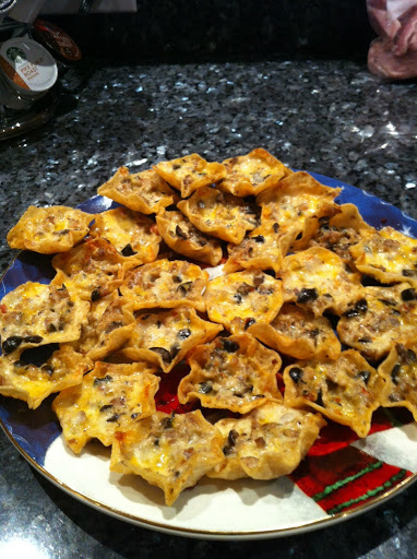 Fill scoops with mixture and place on a baking sheet…. Sprinkle with Essence and bake @ 350 for 7 – 10 minutes until the cheese bubbles….
