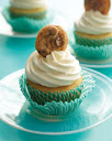 Transfer frosting to a pastry bag fitted with a star tip. Pipe frosting onto cupcakes, and top each with a cookie.