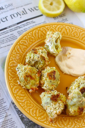 Drain and rinse the artichoke hearts then pat dry thoroughly with paper towels. In a small bowl, combine the breadcrumbs, cheese, salt and pepper. In another smaller bowl, crack the egg and beat lightly with a fork.