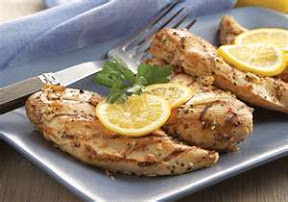 2. Toss chicken breasts with olive oil, Mrs. Dash® Lemon Pepper Seasoning Blend, half of lemon juice and slivered garlic cloves.
