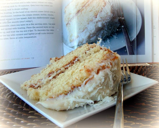 This recipe, from “Barefoot Contessa at Home” was a success at my dinner party. The cake was very moist, not too sweet with the right balance of coconut. Some reviewers say to replace the milk with coconut milk, and to use coconut extract instead of almond extract; I might try that next time.
