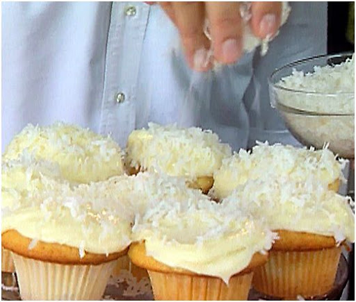 Frost the cupcakes and sprinkle with the remaining coconut.