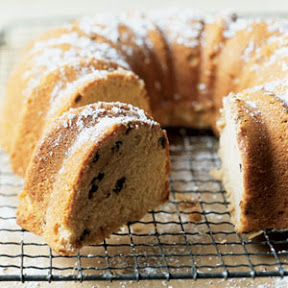 Place cream cheese and butter in a bowl; beat with a mixer at high speed to blend. Add granulated sugar, brown sugar, and vanilla; beat until blended. Add eggs, 1 at a time; beat well after each addition. Beat on high speed 1 minute. With mixer on low, add flour mixture and liqueur alternately to sugar mixture, beginning and ending with flour mixture; beat well after each addition. Fold in chocolate chips. Pour batter into a 12-cup Bundt pan coated with baking spray. Bake at 325° for 55 minutes or until a wooden pick inserted in center comes out clean. Cool 10 minutes on a wire rack; remove from pan. Cool completely on wire rack. Sift powdered sugar over cake.