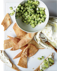 Serve the whipped feta lightly chilled or at room temperature with the cucumbers and toasts.
