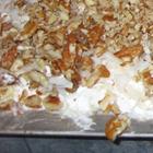 Mix pudding according to pkg directions and add coconut. Spread over pineapple and cover with whipped topping, sprinkle with nuts.