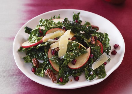 This hearty salad shows how well pomegranates go with other fall ingredients. Tuscan kale is also known as lacinato kale or dinosaur kale.