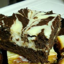 Pour cream cheese mixture over the brownie mix & with the tip of a knife swirl to marble.