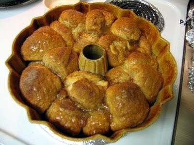 Preheat the oven to 350 degrees. Spray a bundt pan with nonstick cooking spray. Mix the granulated sugar and cinnamon. In a saucepan, melt the butter and brown sugar over low heat, stirring well; set aside. Cut the cream cheese into 20 equal cubes. Press the biscuits out with your fingers and sprinkle each with 1/2 teaspoon of cinnamon sugar. Place a cube of cream cheese in the center of each biscuit, wrapping and sealing the dough around the cream cheese. Sprinkle 1/2 cup of the nuts into the bottom of the bundt pan. Place half of the prepared biscuits in the pan. Sprinkle with cinnamon sugar, pour half of the melted butter mixture over the biscuits, and sprinkle on 1/2 cup of nuts. Layer the remaining biscuits on top, sprinkle with the remaining cinnamon sugar, pour the remaining butter mixture over the biscuits, and sprinkle with the remaining 1/2 cup of nuts. Bake for 30 minutes. Remove from the oven and cool for 5 minutes. Place a plate on top and invert