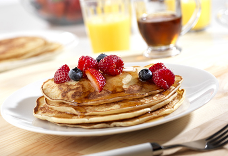 3.Heat 1 tablespoon oil in a 12-inch skillet or a griddle over medium-high heat. Pour 1/4 cup batter into the skillet for each pancake. Cook for 1 minute or until bubbles form on the pancake surface and the edges are dry. Turn and cook until golden. Remove the pancakes from the skillet and keep warm. Repeat with the remaining batter, adding additional oil as needed.
