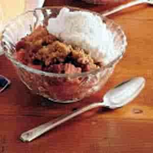 Garden-fresh rhubarb is put to great use in this easy recipe. It’s wonderful with ice cream.