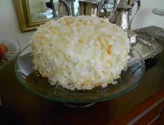 The best of all southern cakes is the coconut cake. This one was created for Schlatter Foods in Chicago for Recipe Corner Magazine.