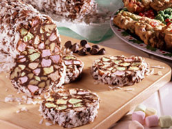 Add 1/2 cup nuts. Roll in waxed paper. Sprinkle with confectioners sugar or coconut. Makes 3 rolls.