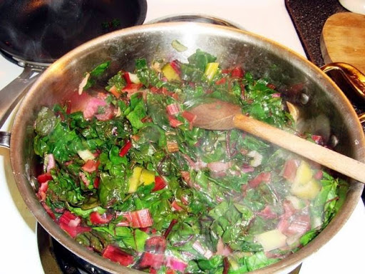 - 2 lg. bunches swiss chard (white, red or rainbow)