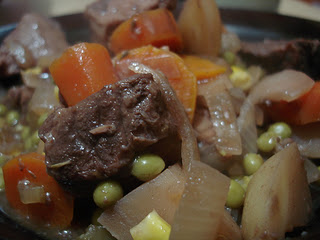 Rinse frozen peas in colander under cold running water. Drain. Increase heat to high and add peas to stew mixture.