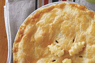 Fill with apple mixture; set aside. Roll out remaining dough as directed; place over filling. Trim top crust about 1/2 inch beyond edge of pie plate. Fold edge of top crust under edge of bottom crust; pinch edges together to form a ridge. Flute edge (see Tip). Cut several slits near center of pie to allow steam to escape.