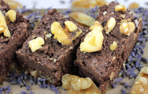 Combine walnut/lavender pulp, cacao powder, liquid coconut oil, maple syrup, and vanilla in a food processor and blend until smooth. Pour chocolate blend over frozen crust and freeze for 15 minutes or until solid before serving. Add a pinch of fancy salt on top. This fudge is best stored in the fridge, but can be left out for a few hours when serving. Enjoy a piece with a fresh glass of walnut lavender milk!