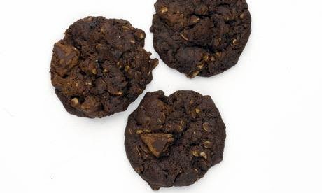 Preheat the oven to 160C (fan-assisted 140C)/325F/gas mark 3. Melt the butter in a pan, remove from the heat and stir in the treacle, stem ginger, sugar and oats. Mix and sift the flour, cocoa, soda, ground ginger and mixed spice, stir this through, then stir in the chocolate. Roll into balls the size of an unshelled walnut and press these down a little on to a baking tray lined with nonstick baking paper, spaced 3-4cm apart.