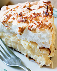 Mix Milk and Egg Yolks togetherand place in microwave until hot. In seperate bowl mix sugar and flour. Mix all together. Place back in microwave for 2-1/2 minutes. Remove and mix in coconut and place back in microwave for 2-1/2 more minutes. Add Butter and Vanilla and pour into pie shells. Allow to cool before adding meringue.