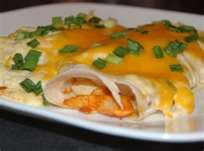Drizzle buffalo sauce over enchiladas prior to topping them.