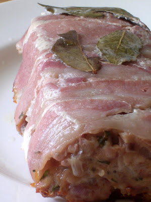 Preheat oven to 375 degrees. Using four of the bacon pieces for each meatloaf, wrap the bacon tightly around the top of each loaf. Place loaves on lightly oiled baking sheet and cook for 25 to 30 minutes, or until internal temperature reaches 160 degrees.
