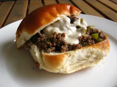To serve, place a scoopful of the meat mixture onto the bottom of the rolls, then top with the cheese sauce and replace the top of the roll.
