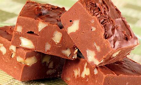 Using foil, lift fudge out of pan; cut into 1-in. squares. Store in an airtight container in the refrigerator. Yield: about 6 pounds.