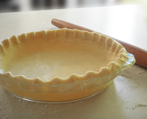 Mix flour, shortening, and salt together with a pastry blender. Add milk and lightly mix with a fork. Roll out onto lightly floured surface until it is the correct size for the pie plate. Put crust into pie plate, then lightly press it against the bottom and sides of the pie plate. Remove any excess crust from the sides with knife or scissors. You can make any design you want on the edge of the crust.