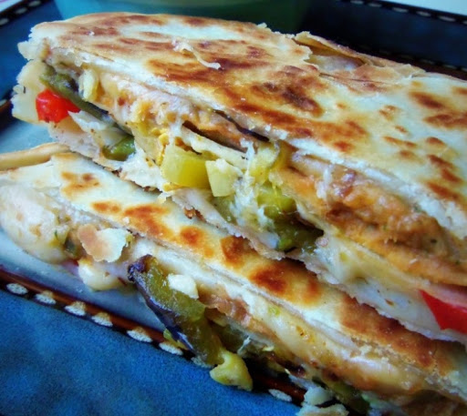 These sincronizadas, or double-stacked quesadillas, are vegetarian friendly. Make your own recipe and fill them with whatever you want!