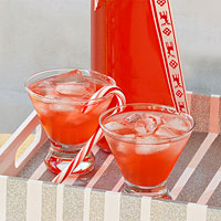Using funnel, pour candy cane powder into bottle of vodka. Screw on lid and shake to mix. Let vodka sit, shaking occasionally, until candy dissolves and vodka turns red, about 30 minutes. Serve over ice, or use to spike eggnog or hot chocolate, or place in decorative jars and gift them to your friends.