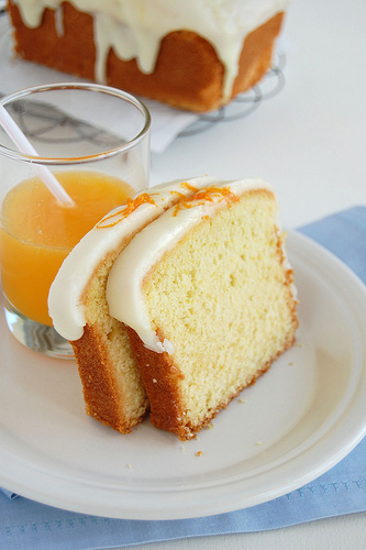 To make the icing: combine the sugar and orange juice in a small bowl and mix to form a smooth paste. Use a palette knife to spread the orange icing over the cake and top with the zest.