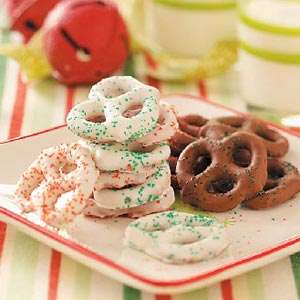 In a microwave, melt half of candy coating at a time; stir until smooth. Dip pretzels in candy coating; allow excess to drip off. Place on waxed paper; let stand until almost set. Garnish as desired; let stand until set. Yield: 5-6 dozen.