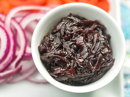 Using a large saute pan over medium heat, heat the oil. Add onions and cook, stirring occasionally, until they begin to soften and become translucent, about 10 minutes. Add sugar and continue cooking until sugar and onions caramelize, about 10 minutes. Increase heat to medium-high, add the vinegar and wine, and bring to a boil, stirring frequently. Reduce to a simmer, add thyme and cook until liquid has evaporated, about 3 minutes. Season with salt and pepper, to taste. Serve warm or at room temperature. Store cooled jam, refrigerated in an airtight container.