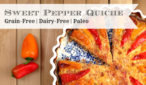 Spoon into the greased pie plate, level with the back of a fork. Slice 3-4 little sweet peppers into strips and lightly press them into the egg mixture.