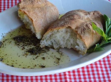 Bake at 425° for 10 minutes, then turn the oven down to 400° and bake another 25-30 minutes. To check if they’re done, pick one loaf up and thump on the bottom with your thumb. If it has a hollow sound, it’s done. If you want really crusty bread, great for dipping in olive oil or marinara sauce, place a pan of water in the bottom of the oven. The steam will keep a skin from forming too fast, giving the bread more time to rise. It will also make the crust crisper. Don’t put the loaves near the top. The radiant heat from the top of the stove will brown the crust too much, too fast. Serve immediately with butter, or with olive oil and balsamic vinegar for dipping.
