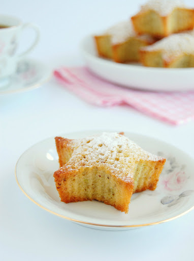 Makes 12 – I halved the recipe above and got 9 friands, 6 using 3-tablespoon capacity star shaped pans + 3 using 1/3-cup (80ml) capacity muffiin pans