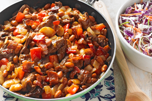COOK steak strips in deep large nonstick skillet or Dutch oven on medium-high heat 3 min. or just until no longer pink in centers. Remove to plate.
