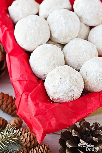 6. Remove from cookie sheet and immediately roll in powdered sugar.