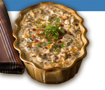 Serving option: Dip may also be placed in hollowed round sourdough loaf, wrapped in foil and heated in 400 degree oven for 30 minutes.