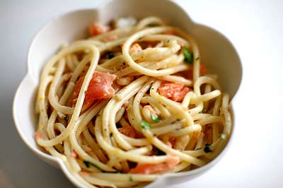 - 3 1/2 ounces spaghetti or penne (or other) pasta