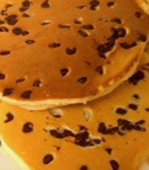 Heat a nonstick skillet or griddle and pour out your pancakes (whatever size you like). Sprinkle in a few cacao nibs on top of each pancake.