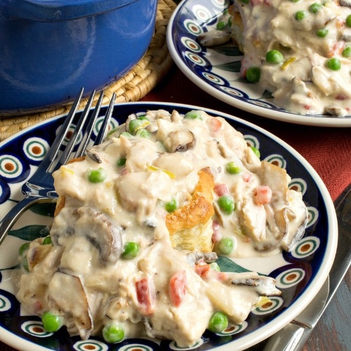 8. Arrange puff pastry on a serving plate and top with chicken a la king.